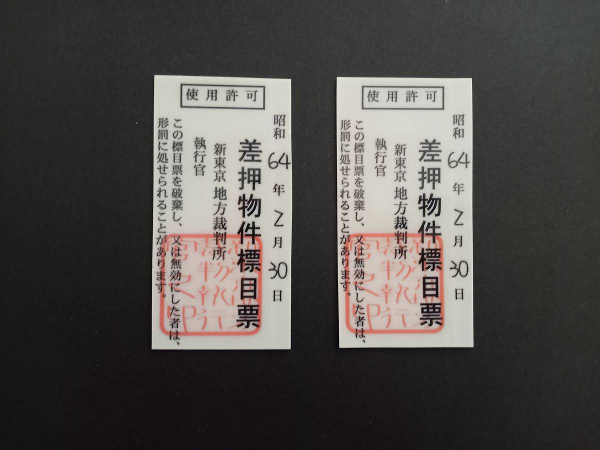 - レア物【2枚セット】差押物件標目票 ステッカー パロディ ジョーク グッズ 昭和 レトロ