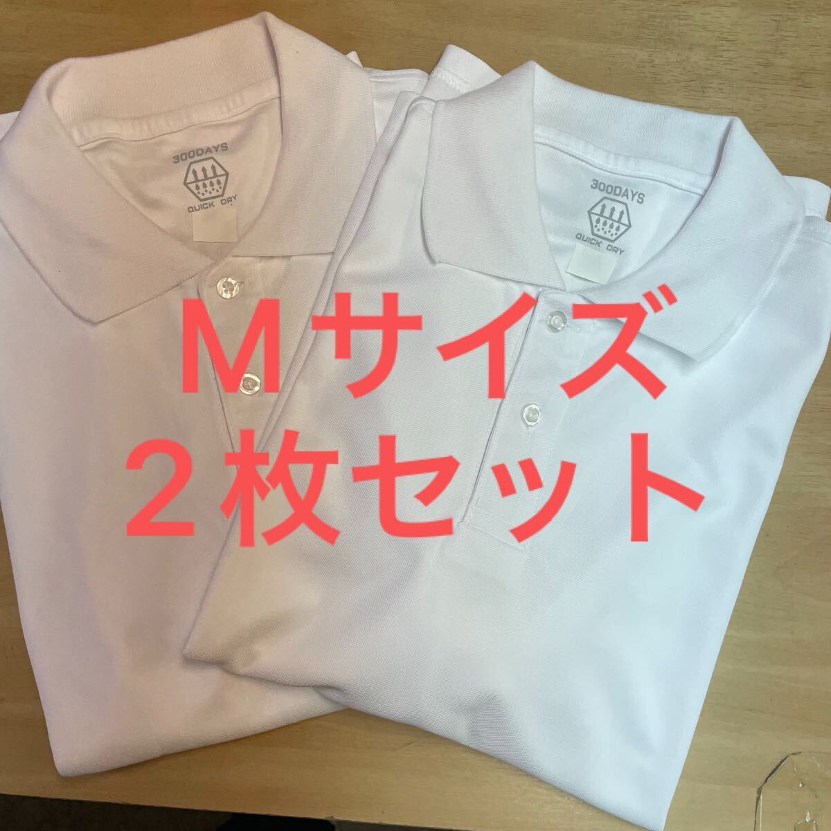 - 訳ありMサイズメンズ速乾素材半袖ポロシャツ白2枚セット