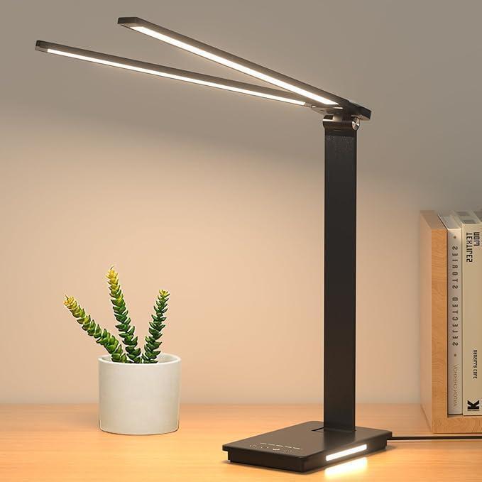 > スタンドライト デスクライト ダブルライトバー 超高輝度 5段階調光・調色 タッチセンサー 多角度調整 タイマー機能 省エネ