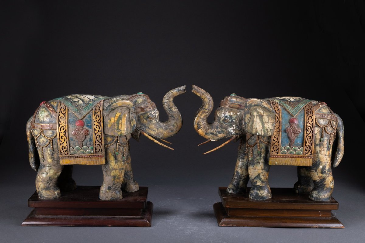 - 【雲錦】某有名オークション購入 時代物 特殊白材太平有象紋置物 古置物 古擺件 中国伝来 古美術 時代コレクションWK9-53