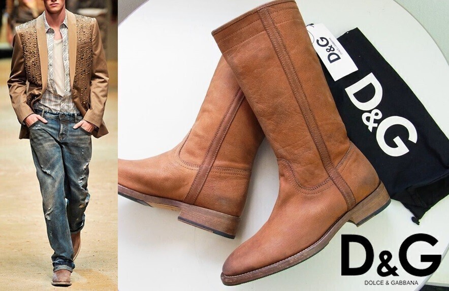 > 激レア★D&G ディーアンドジー 06SS★DOLCE&GABBANA★ユーズド加工 本革ロングレザーブーツ サイズ40 25cm★ブラウン茶【本物保証】廃盤品