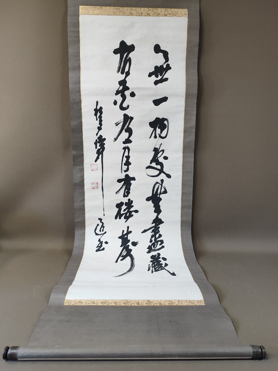 - k124 【作者不詳】 書 二行書 紙本 掛軸 箱無 書道 時代物