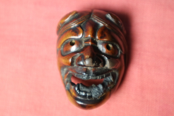 - 提げ物 根付 般若面 ① 検江戸木彫能面古道具珍品希少骨董オブジェ時代