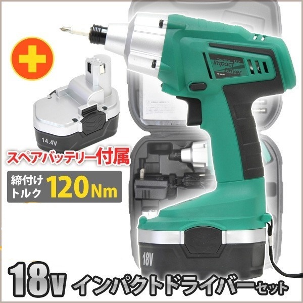 > 値下げ/強力!18V/充電インパクト/バッテリー2個/ビット/LED/マグネット/ケース/充電アダプター/ACアダプター
