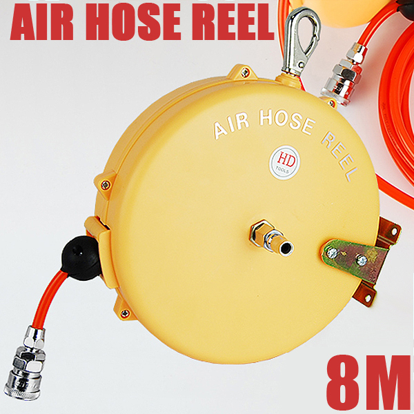 - 【エアホースリール 8m】自動巻/エアーホース/自動巻取り/ブローガン/コンプレッサー用/エアリール