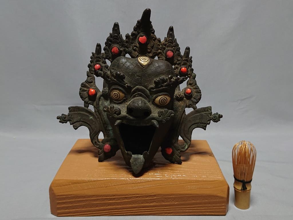 - コレクター収集品 チベット 古銅 鬼面 台付
