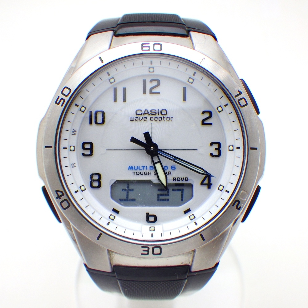 > 25-H-174 CASIO カシオ ウェーブセプター WVA-M640 メンズ腕時計 ホワイト文字盤 タフソーラー アナデジ 稼働品