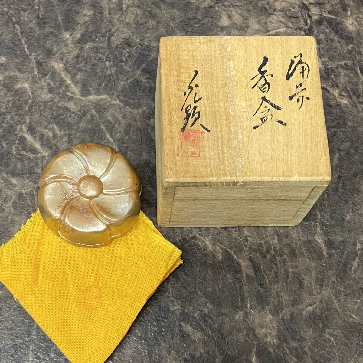- 備前焼 香合 日幡光顕 共箱 共布 茶道具/裏千家/表千家/今日庵/家元/千利休