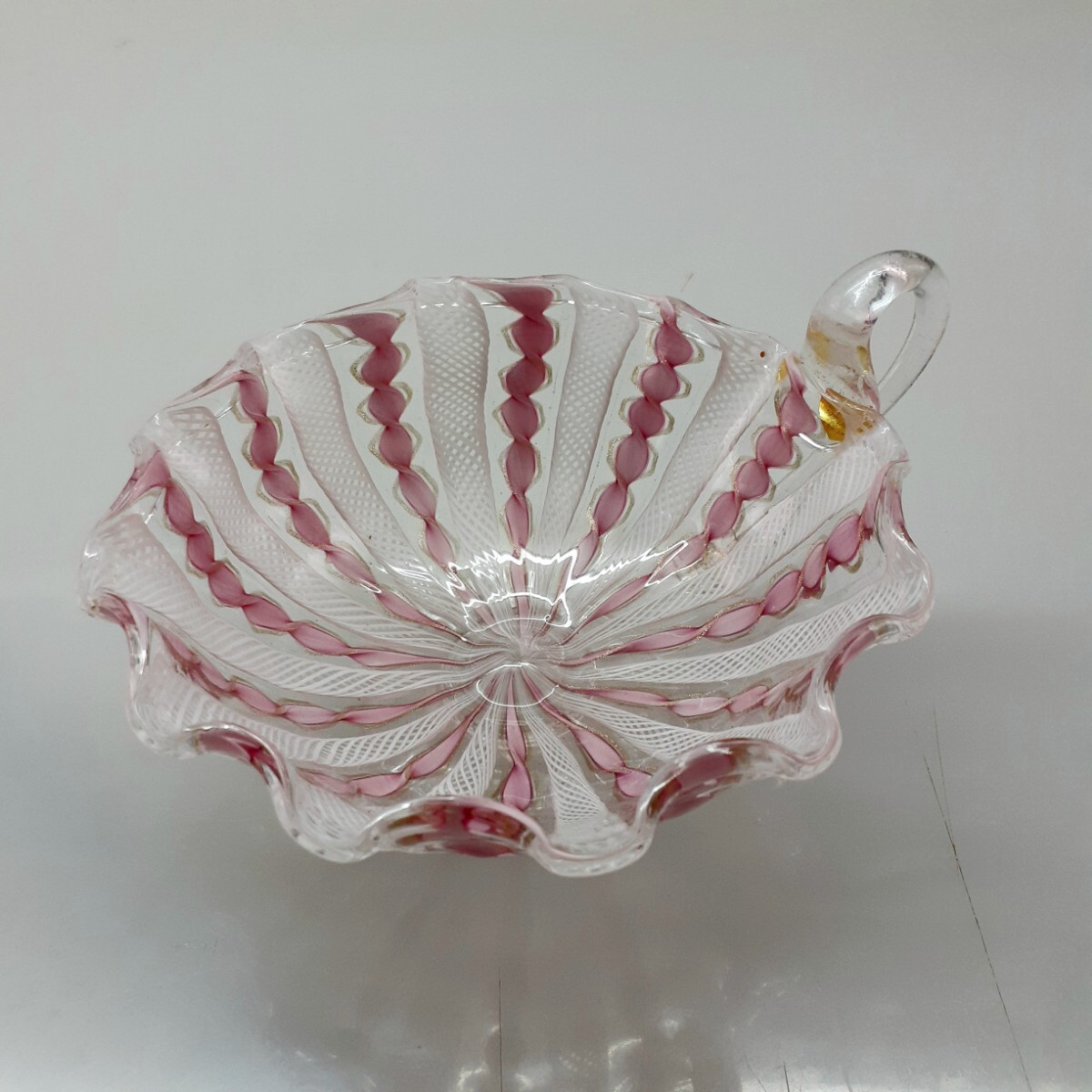 - 【MURANO】ITALY★ムラノ 金彩 ピンク リボン ホワイト レース デザートカップ 皿★ヴェネチアン グラス ムラーノ 島 ベネチアン ガラス