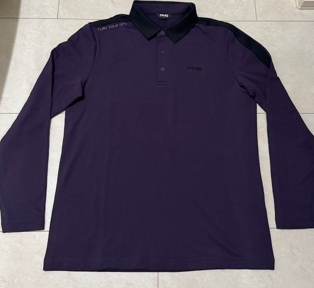 - ☆未使用 正規品☆ピン ゴルフ PING GOLF 秋冬用 吸汗速乾 裏起毛 ストレッチ ボタンダウン長袖Tシャツ XLサイズ パープル