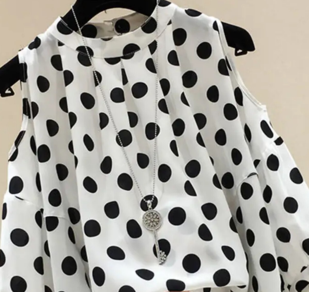 - ポルガドットプリントオフショルダートップス☆海外サイズXXL☆ホワイト×ブラック☆未使用