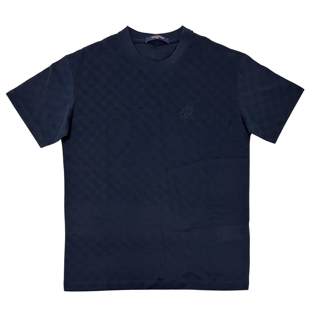 - ルイ・ヴィトン LOUIS VUITTON Tシャツ ダミエ メンズ ブランド 半袖Tシャツ コットン メッシュTシャツ ネイビー S 通気性 美品