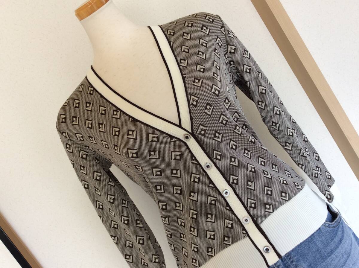 - 即決 caravan 古着屋購入 レトロ系幾何学模様カーディガン 女性9号サイズ レターパックライト込 9月28日初出品