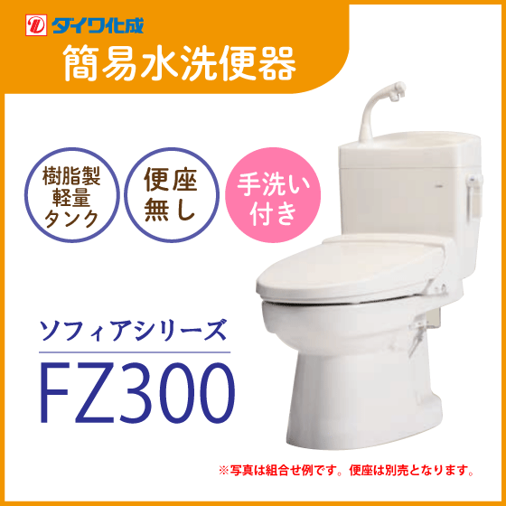 - 簡易水洗便器 簡易水洗トイレ クリーンフラッシュ「ソフィアシリーズ」 FZ300-H00(手洗付)・便座無し ダイワ化成