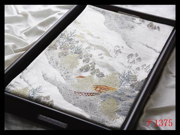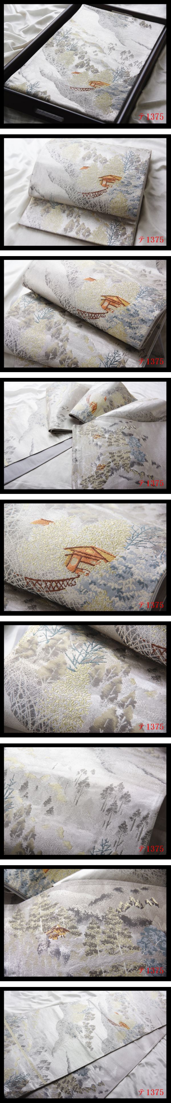 - 蔵【テ1375】西陣美品 シルバー色地 気品豊かに 正絹純金糸六通高級美術袋帯 ◇検◇簪着物名古屋帯和装小物帯締め