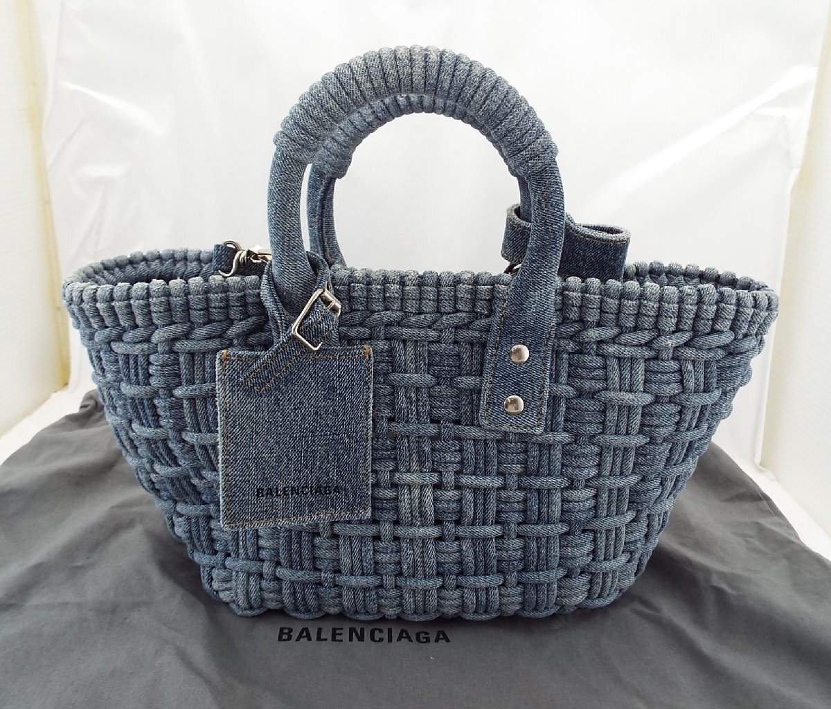 > D795〇BALENCIAGA/バレンシアガ BISTRO ビストロ XS 2WAY バスケットバッグ ハンドバッグ ショルダーバッグ デニムブルー
