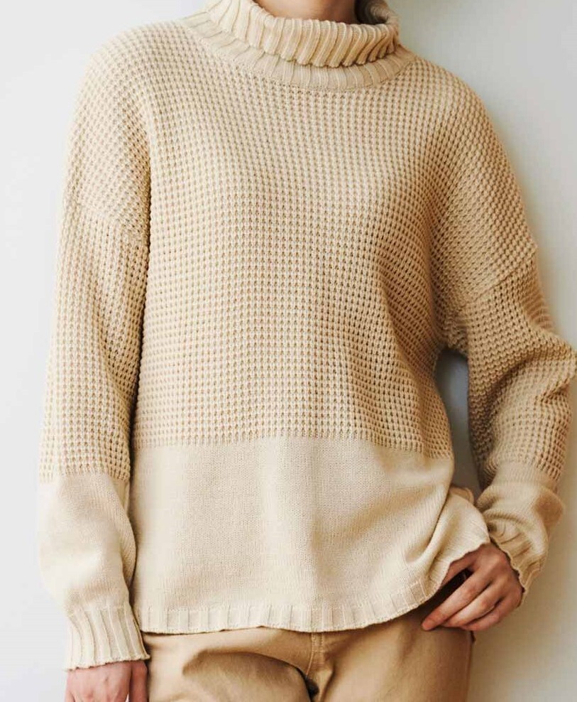 - ☆新品!☆ フェリシモ HIROMI YOSHIDA. ワッフル柄で切り替えたニットセーター LLサイズ