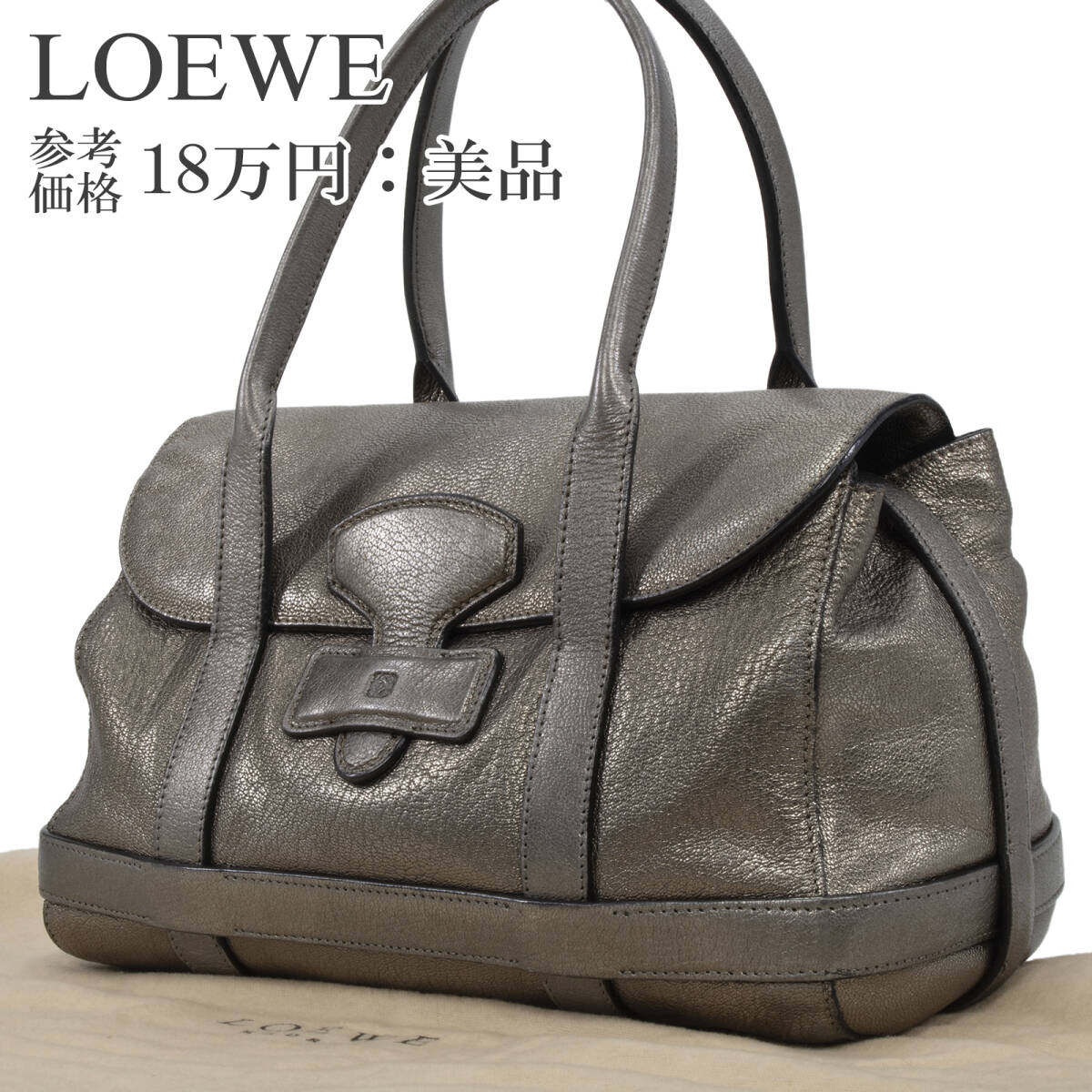 > 本物 送料無料 ロエベ ハンドバッグ レディース アナグラム 銀色 シルバー 珍しい 自立可能 ロゴ マーク 光沢 本革 レザー 鞄 バック E423