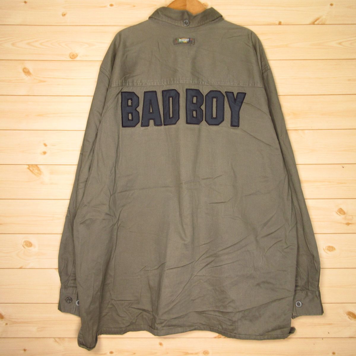 > ◎BADBOY バッドボーイ フィッシングシャツ ストリート HIPHOP B系 y2k 大きめサイズ! メンズ カーキ LL(2L)サイズ◆AA4487