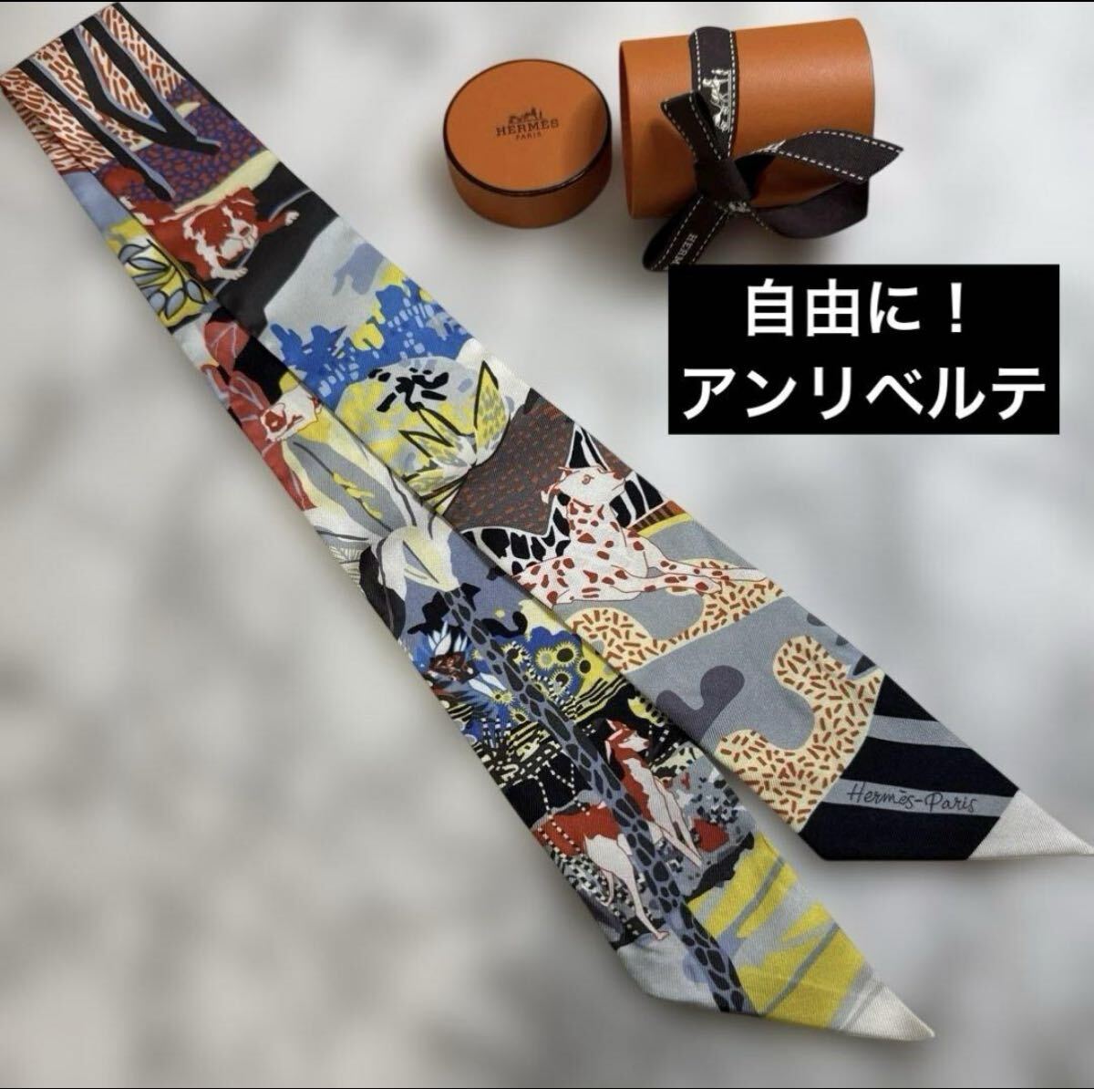 - 完売デザイン HERMES エルメス ツイリー 自由に アンリベルテ! 犬 ワンちゃん 総柄 ブラック系