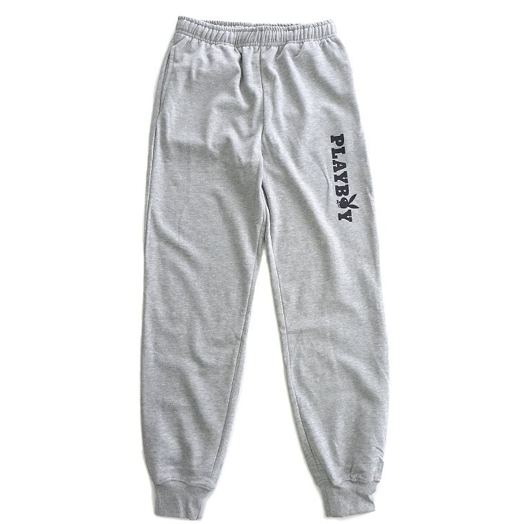 > 新品 プレイボーイ 秋冬 裏起毛 プリント スウェット パンツ M 灰 【744020_97_M】 PLAYBOY イージー ジョガー パンツ ジャージ