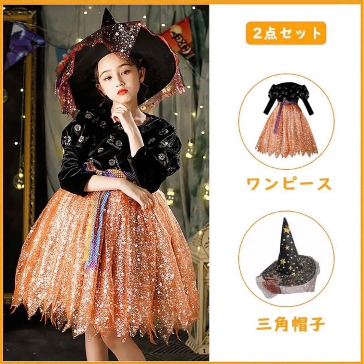 - ハロウィン 魔女 仮装 子供 コスプレ 女の子 可愛い ワンピース コスチューム