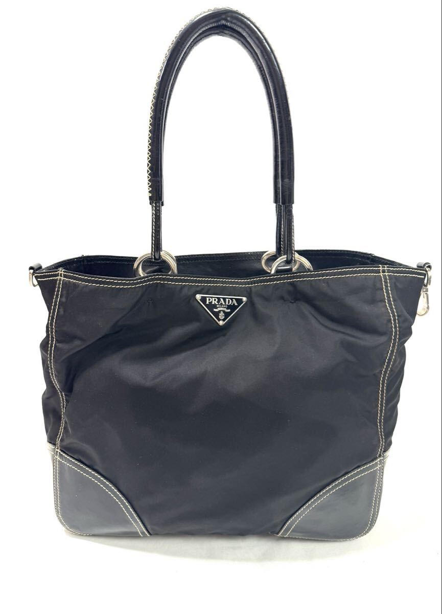 - PRADA プラダ トートバッグ ショルダーバッグ 三角ロゴ ナイロン/ レザー ブラック シルバー金具