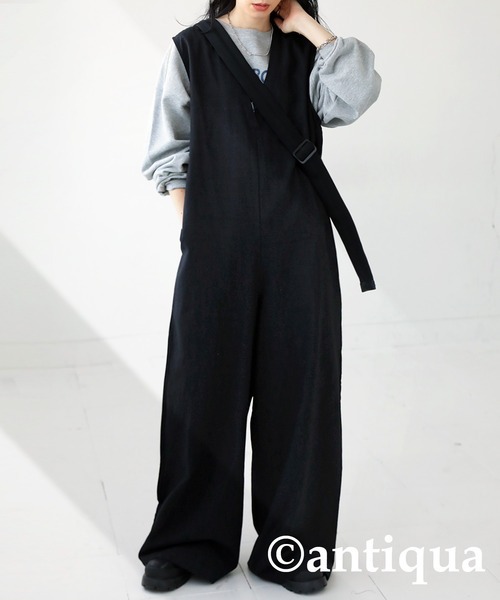 - 「antiqua」 「pattern torso」オーバーオール FREE ブラック レディース