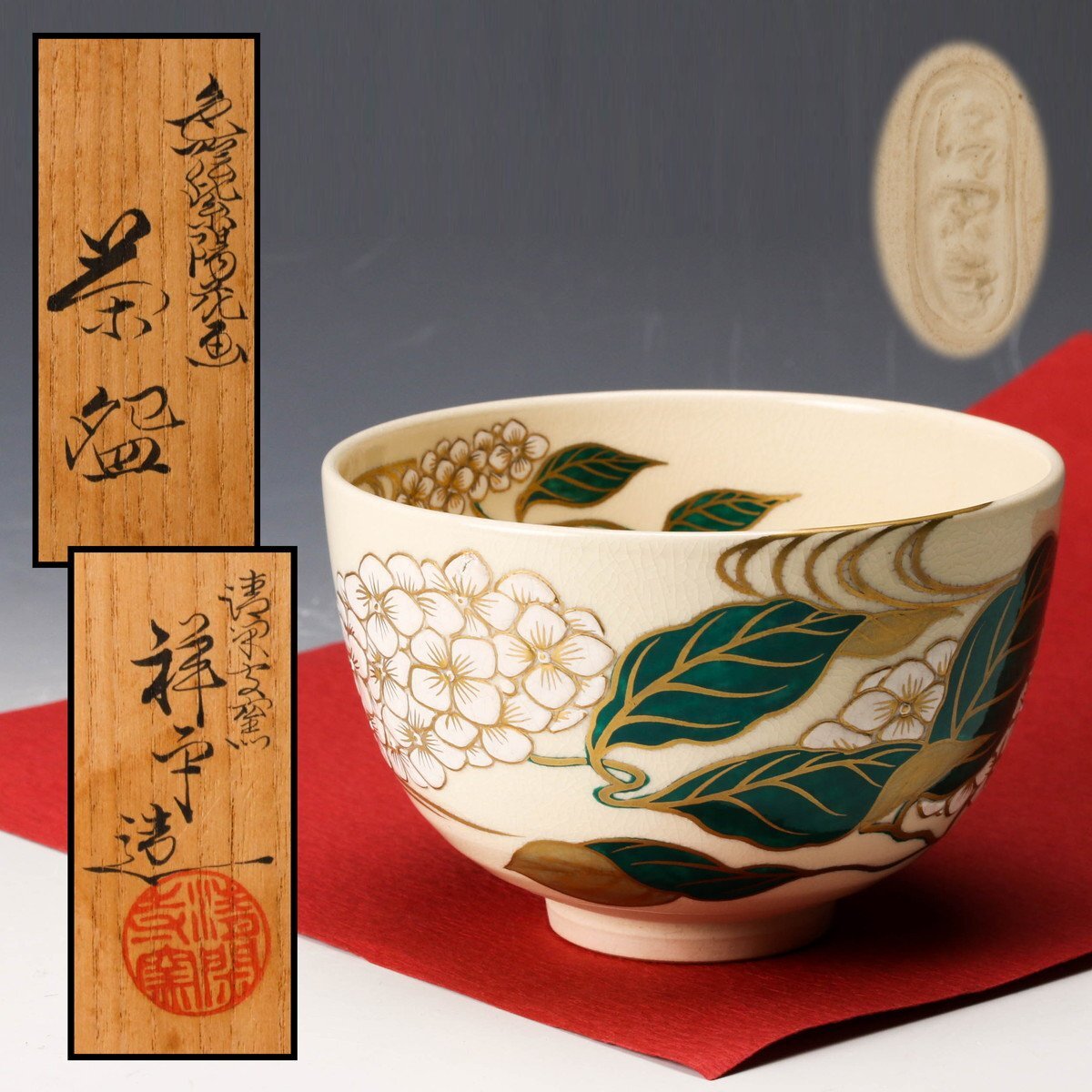 【佳香】杉田祥平 清閑寺窯 色絵紫陽花画茶碗 共箱 茶道具 本物保証