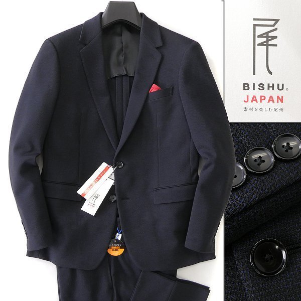 - 新品 FICCE SPORTS フィッチェ 尾州 ジャージー 織り柄 スーツ Y7(細身XL) 濃紺 【J55978】 秋冬 メンズ DON KONISHI セットアップ ウール