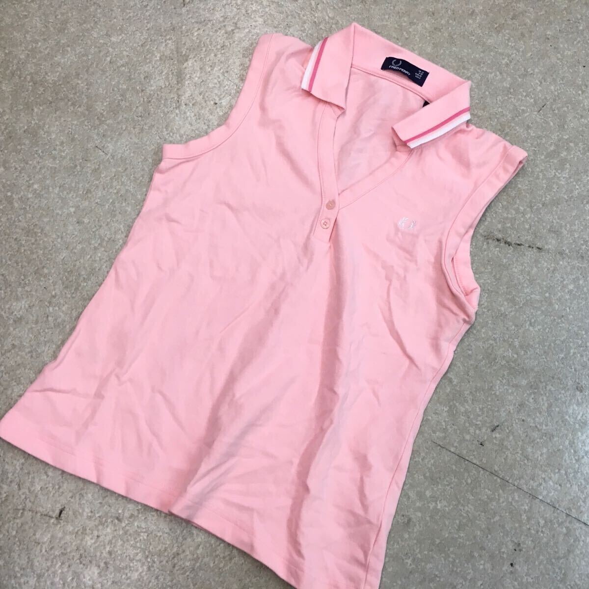 - HY553 フレッドペリー ノースリーブ ポロシャツ Vネック ピンク L相当 レディース