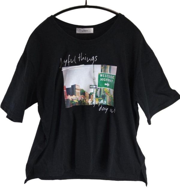 > SS2872◆ 新品 半袖 Tシャツ テールカット プリント有り 背面無地 シンプル フロントプリント 3Lサイズ 黒 ブラック 送料450円