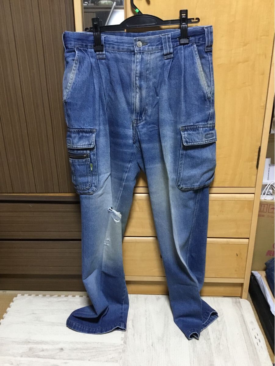 - [K-2025] 古着 デニム ジーンズ ワーク カーゴパンツ 作業着 アウトドアにも メンズ 綿100% ウエスト85cm 売り切り 1980円〜!!