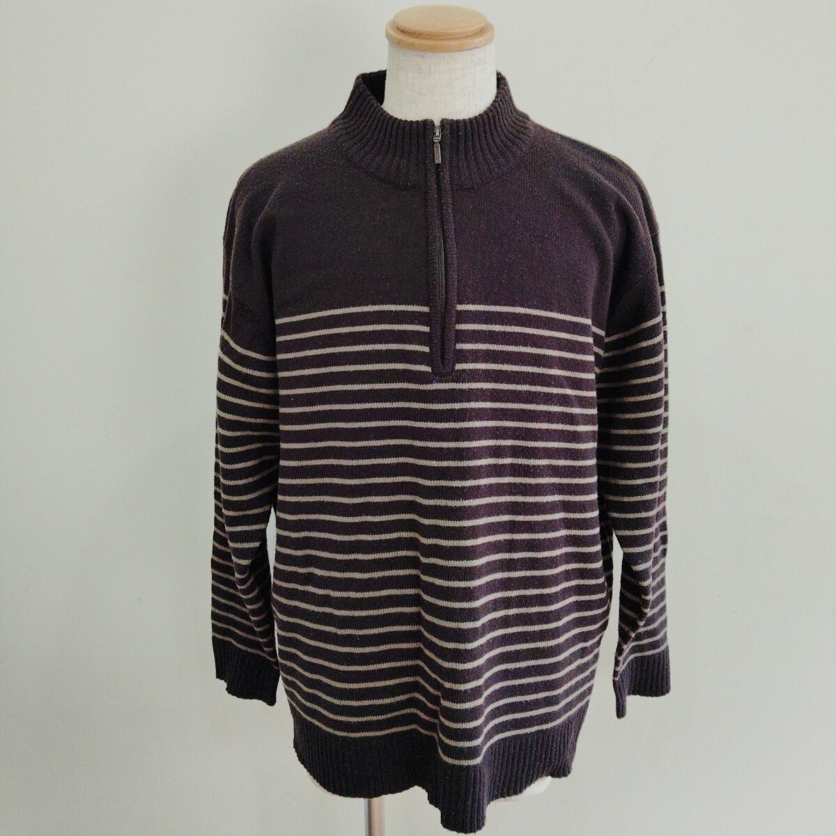 - 196/5L/KANSAI JEANS メンズ ニット ハーフジップ ボーダー アクリル100 ブラウン