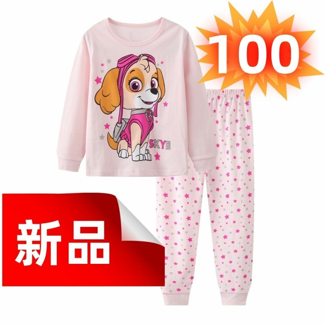 > ★新品★パウパトロール スカイ 長袖パジャマ キッズ 女の子 ピンク 星柄 上下セット 綿 キャラクター 可愛い 100cm