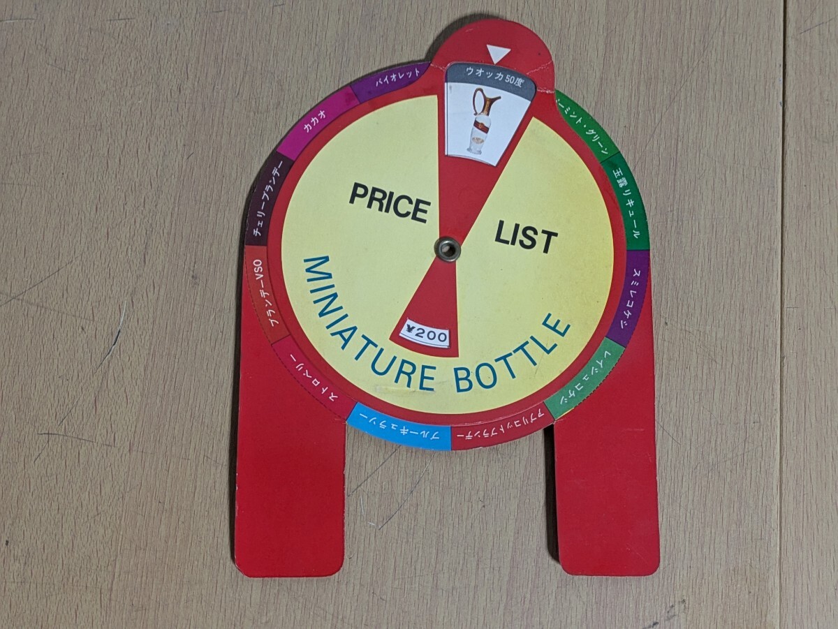- 当時物/ミニチュアボトル プライスリスト 誕生カクテル ルーレット表 店頭 ノベルティ 販促品 酒屋 アルコール飲料 昭和 レトロ
