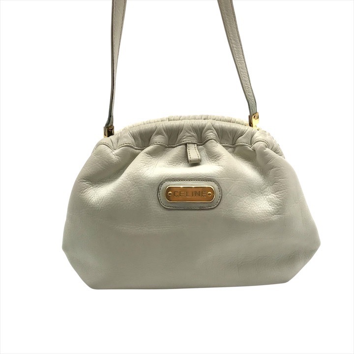 - CELINE セリーヌ ロゴ レザー 2WAY クラッチ ショルダー バッグ 斜め掛け グレージュ ゴールド金具 レザー レディース かばん tm88