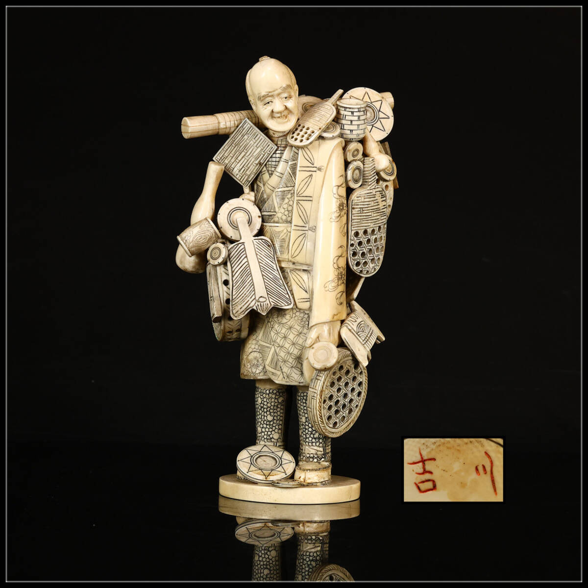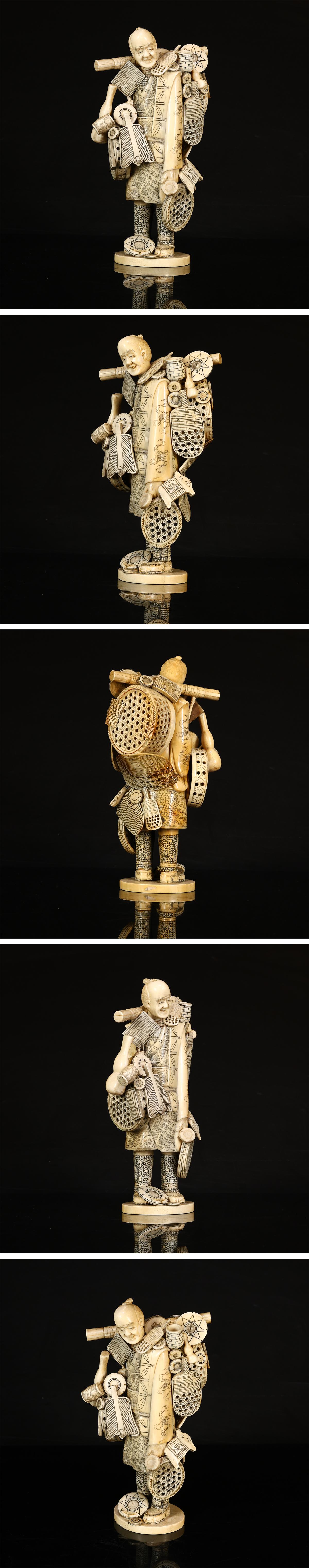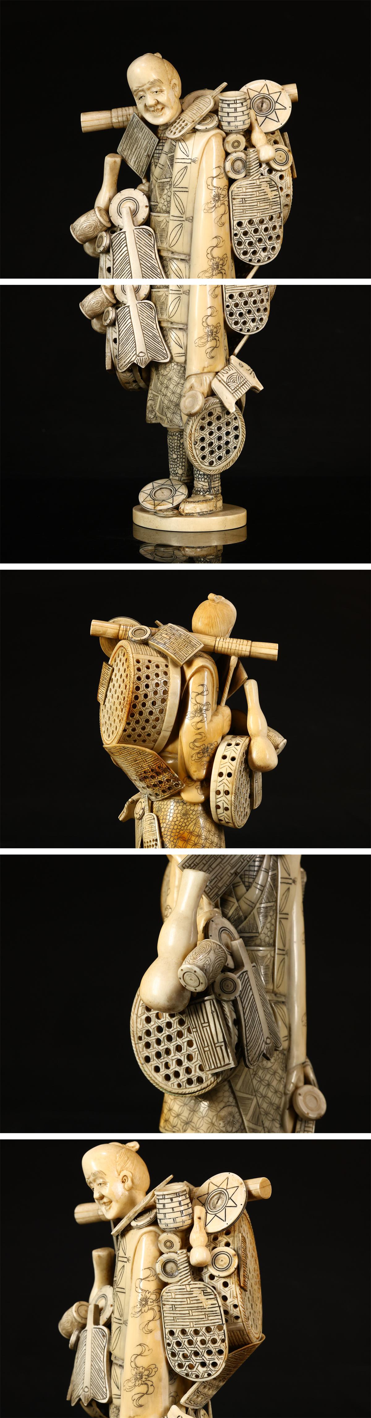 - 久1199 時代 東洋彫刻 籠仙人 置物 高23㎝ I