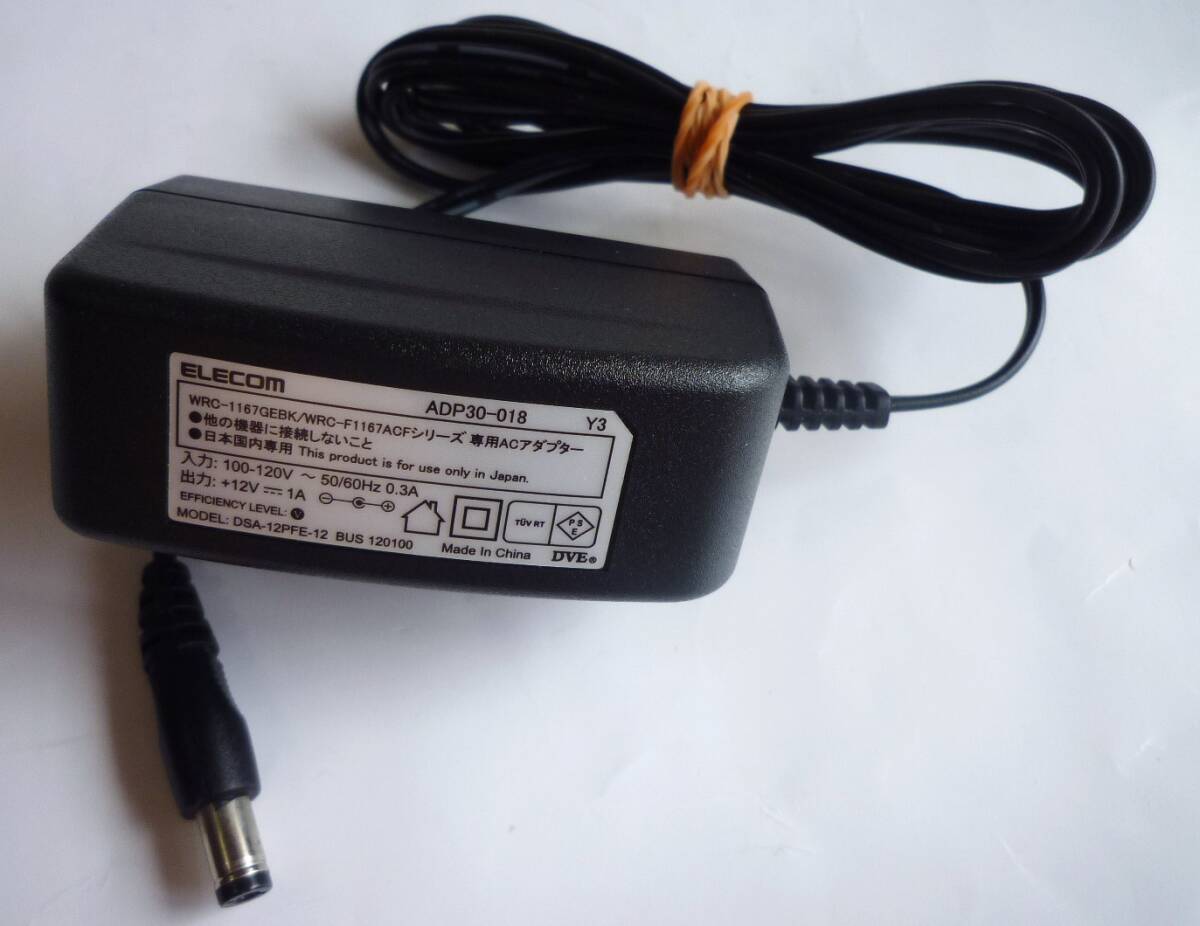 - ELECOM エレコム ACアダプタ 電源アダプタ ADP30-018 Y3 DSA-12PFE-12 BUS WRC-1167GEBKシリーズ用 12V 1A φ5.5mm センターピン無し