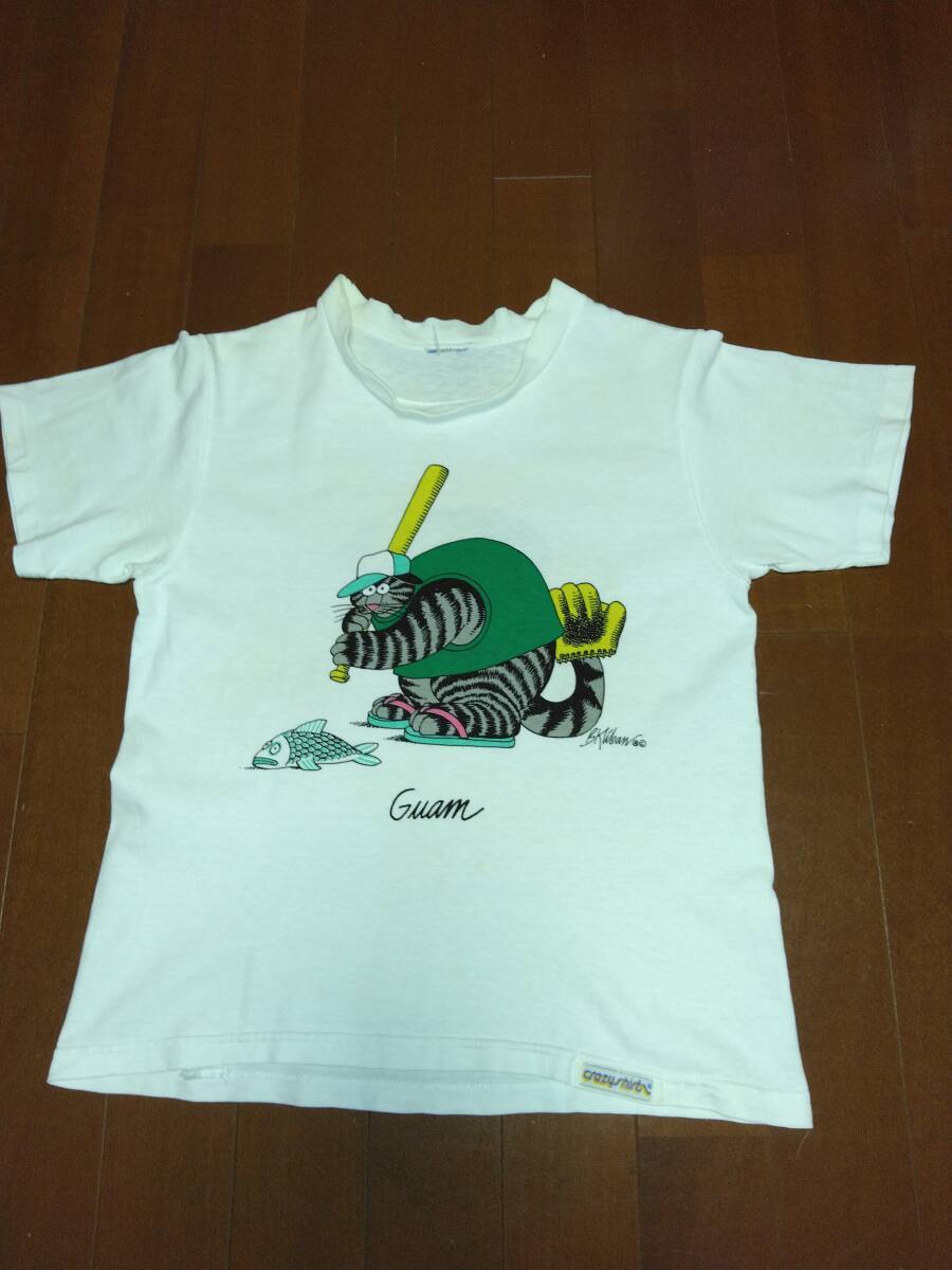 > CRAZY SHIRT クリバンキャット Tシャツ KIDS150 クレイジーシャツ GUAM 猫 野球 USED 中古