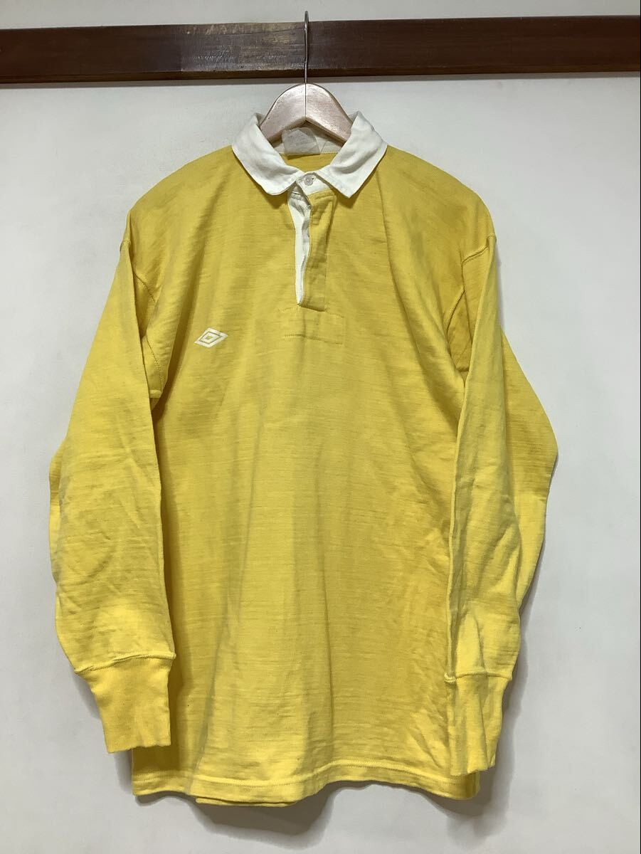 - か1795 UMBRO アンブロ 長袖ポロシャツ 長袖ラガーシャツ 厚手 イエロー オールド ロゴプリント 42