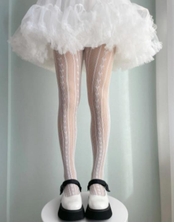 - 新品 タイツ 網タイツ あみタイツ ハート ロリータ メイド ハロウィン 仮装 姫 メイド コスプレ ホワイト 白