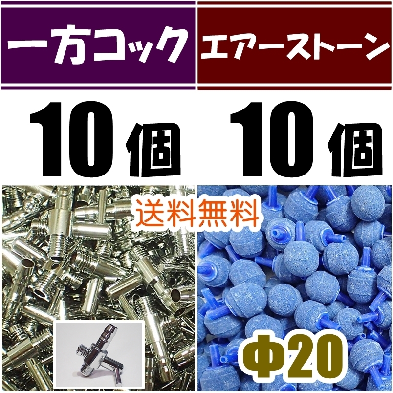 > 【送料込】 一方コック 10個+エアーストーン青 10個 エアーコック シュリンプ・メダカ水槽のエアー供給用に エアーポンプ圧調整に