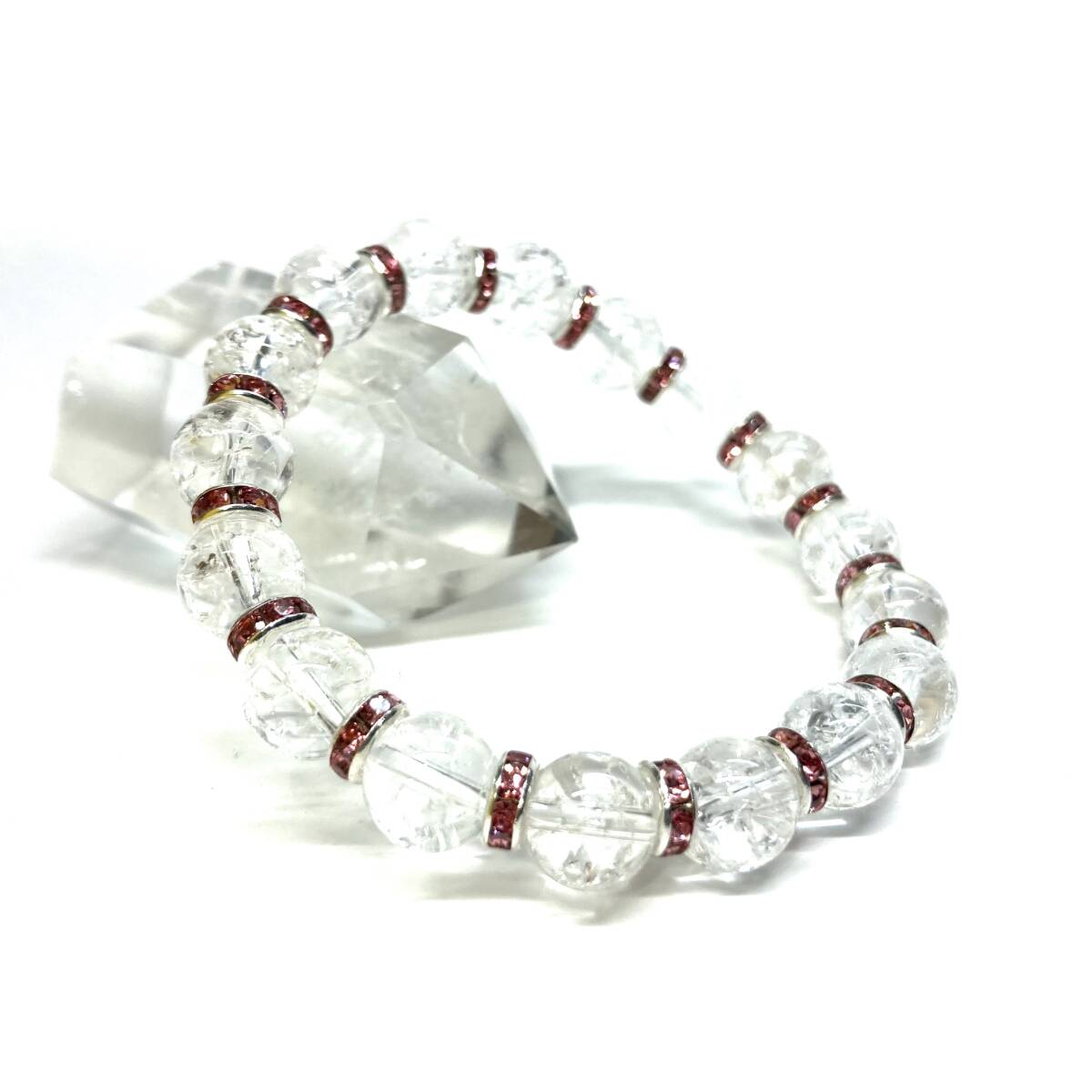 - クラック水晶 パワーストーン ブレスレット 天然石ブレス 8mm (ピンク)/開運 浄化 邪気払い 効果 お守り レディース 通販