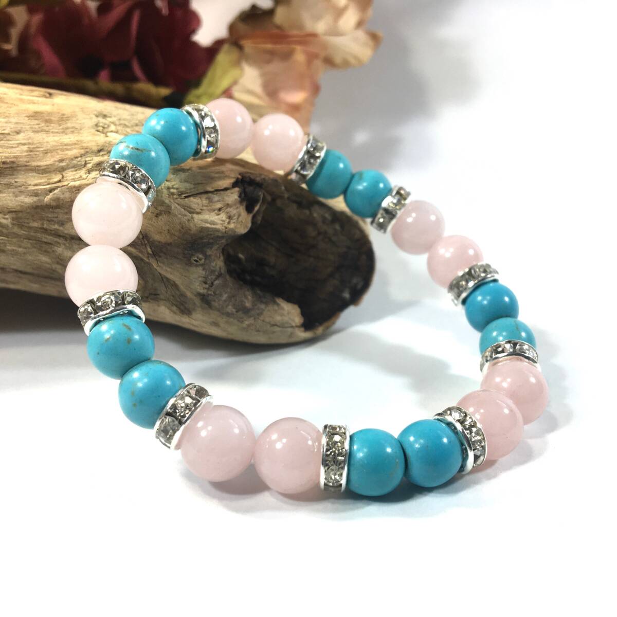 > ローズクォーツ&ターコイズ パワーストーン ブレスレット 8mm 天然石ブレス シルバー / 浄化 美・愛 恋愛運 レディース ピンク #2