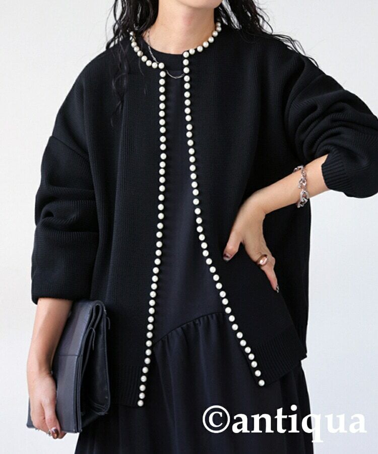 - 未使用 アンティカ antiqua パールボタン カーディガン FREE