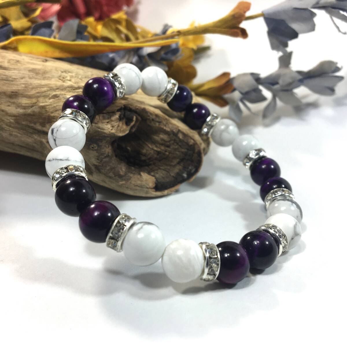 - ハウライト&パープルタイガーアイ パワーストーン ブレスレット 天然石ブレス (シルバー) 8mm /開運 浄化 金運 仕事運 レディース 通販