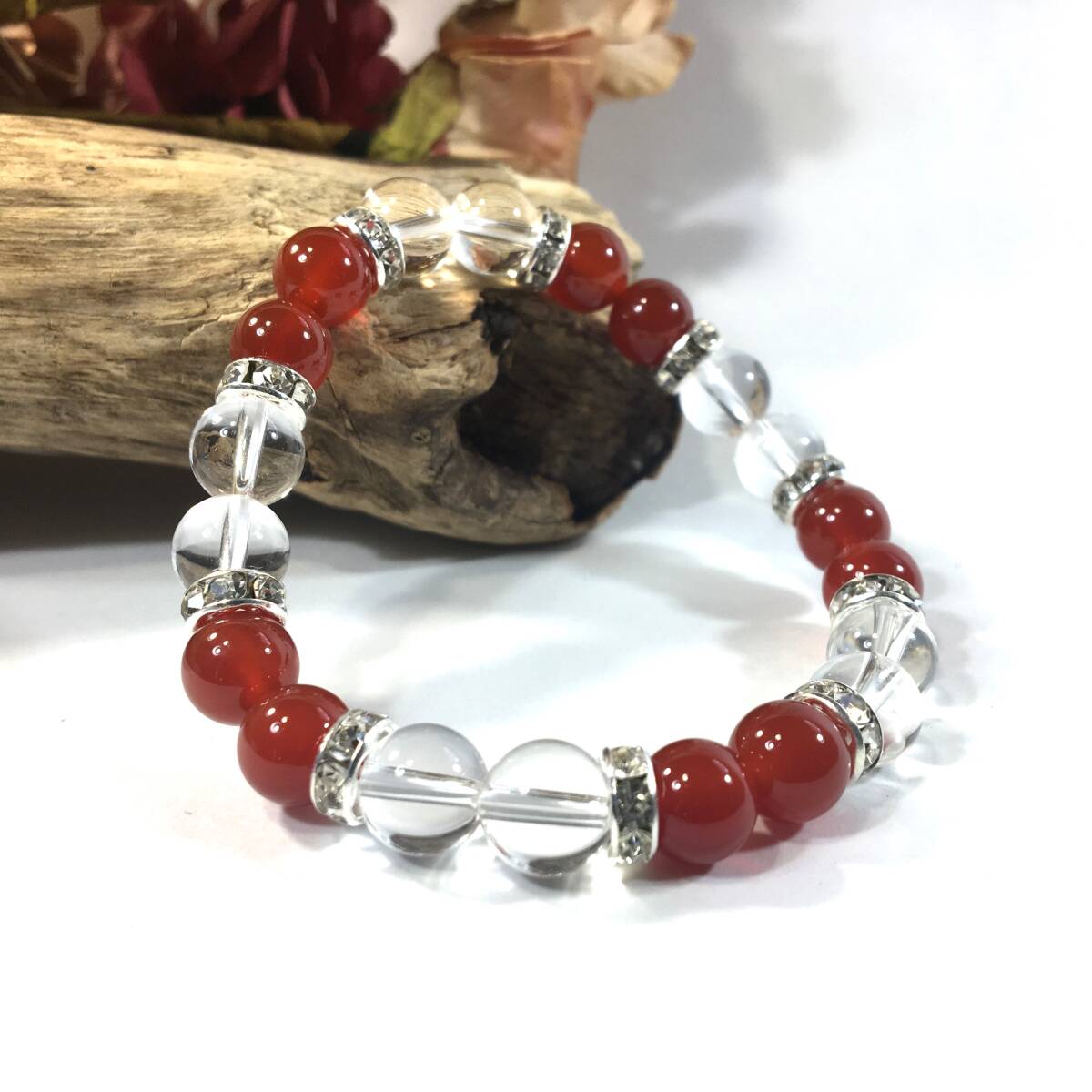 - 赤瑪瑙&水晶 パワーストーン ブレスレット 天然石ブレス ゴールド 8mm /開運 浄化 4月 誕生石 クリスタル レディース 通販