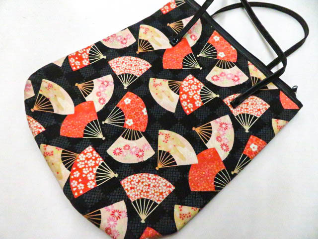 - 《京都一輝堂》【着物】和装小物 和装バッグ 市松扇子に花文 25w03-3800