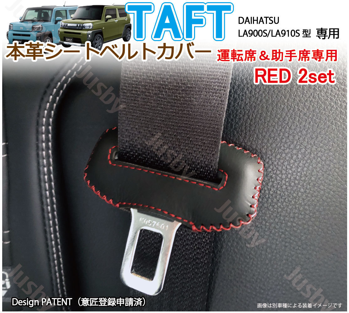 - (赤ステッチ/運転席&助手席用) ダイハツ タフト TAFT 本皮 シートベルトカバー レザーカバー ドレスアップ パーツ カスタム アクセサリー